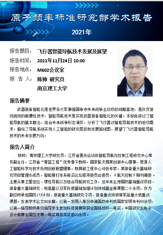 2021年11月24日尊龙凯时人生就是搏原子频率标准研究部学术报告